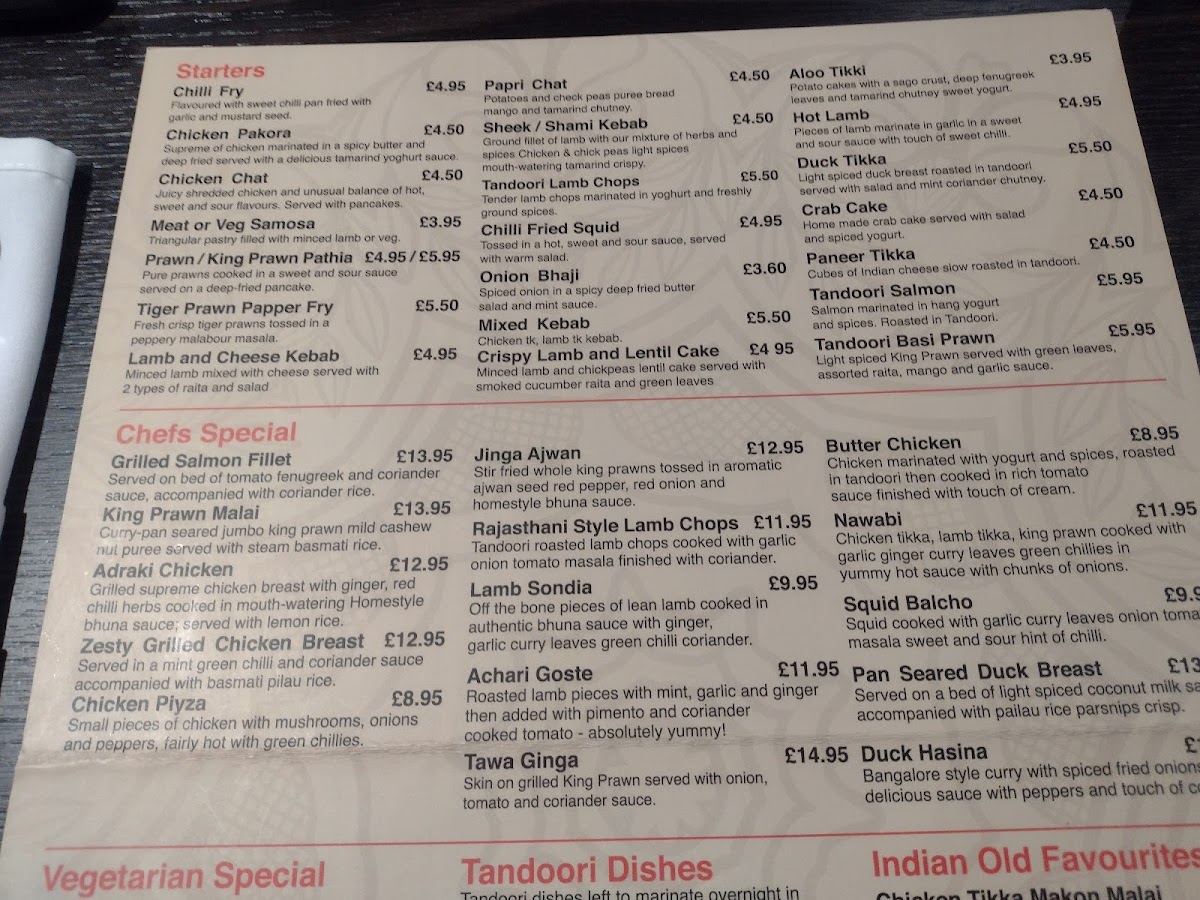 Zak's Indian Kitchen offers an impressive and diverse menu that caters to a wide range of tastes, making it an excellent choice for anyone craving authentic Indian cuisine. The starters are a perfect way to kick off your meal, with options such as the Chilli Fry, Papri Chat, Aloo Tikki, and the popular Chicken Pakora. For those looking to enjoy a more unique experience, the Sheek/Shami Kebab offers a delicious, spiced treat to begin the dining adventure.